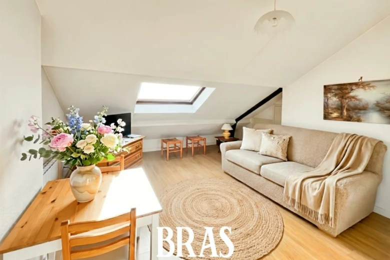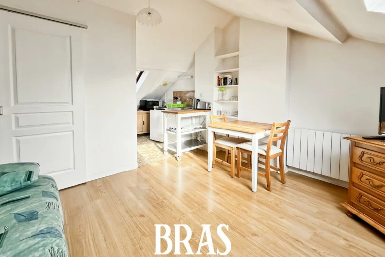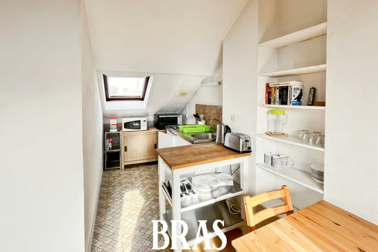 Venez visiter ce studio très lumineux et (vendu avec les meubles) au deuxième et dernier étage sans ascenseur et sans balcon.