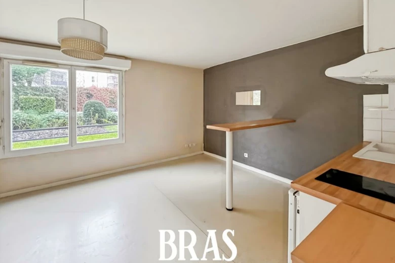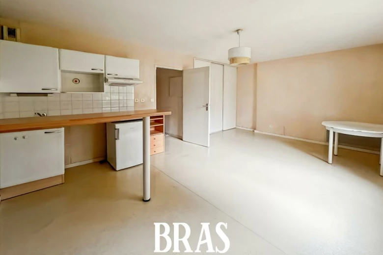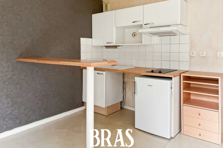 L'appartement se compose d'une entrée, d'un séjour donnant sur l'arrière de la résidence, au calme avec vue sur jardin, d'une kitchenette équipée, ainsi que d'une salle d'eau avec WC.