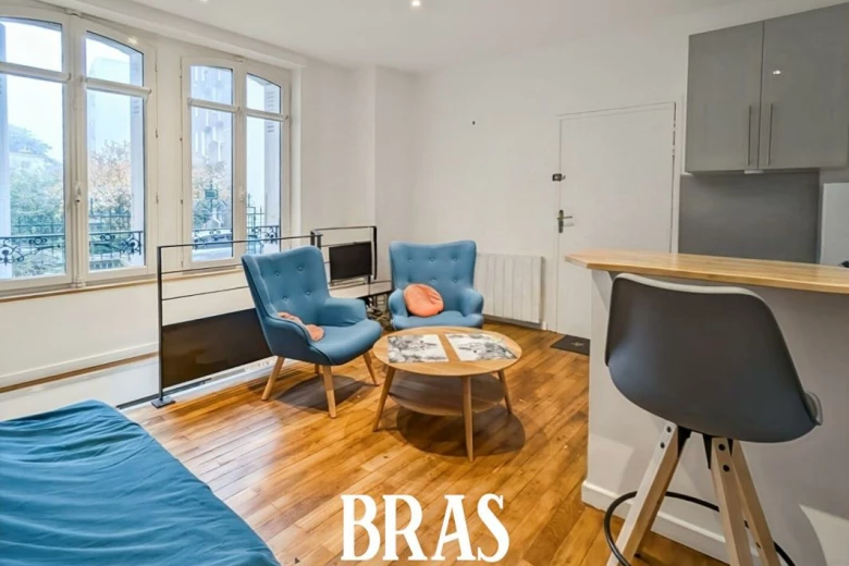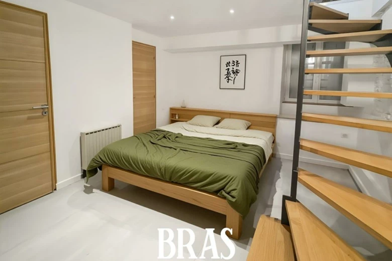 Au calme dans une petite copropriété, entièrement rénové en 2021 par un architecte, l'appartement se compose au rez-de-chaussée d'une jolie pièce de vie sur parquet, avec cuisine aménagée et une chambre avec dressing, salle d'eau et buanderie.
