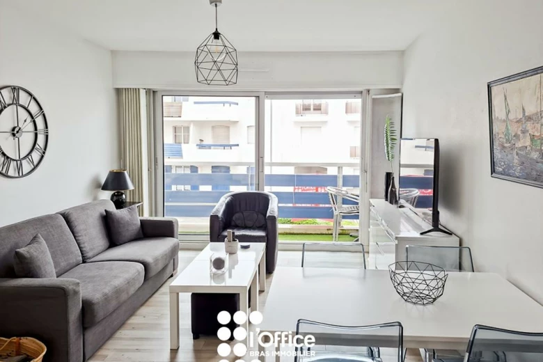 La chaume, côte sauvage, l'Office Bras Immobilier vous présente cet appartement T2 avec aperçu MER comprenant une pièce de vie avec coin cuisine meublée, une chambres... une cave et un balcon!