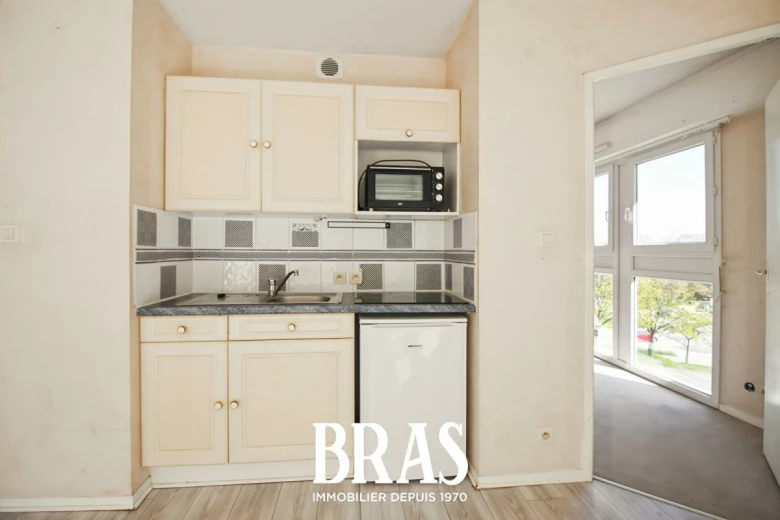 Grand balcon et baies vitrées pour ce 2 pièces situé dans une copropriété sécurisée avec ascenseur. Cet appartement très lumineux comprend un entrée indépendante desservant une belle pièce de vie tournée vers le soleil, avec une double exposition SUD-OUEST et deux grandes baies vitrées donnant sur un balcon de 8m² , une cuisine meublée, une chambre confortable avec placard et une salle d'eau, wc indépendants.