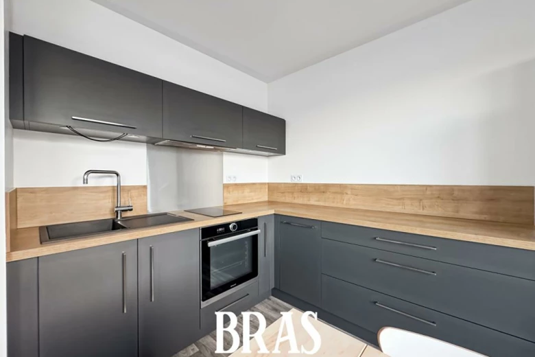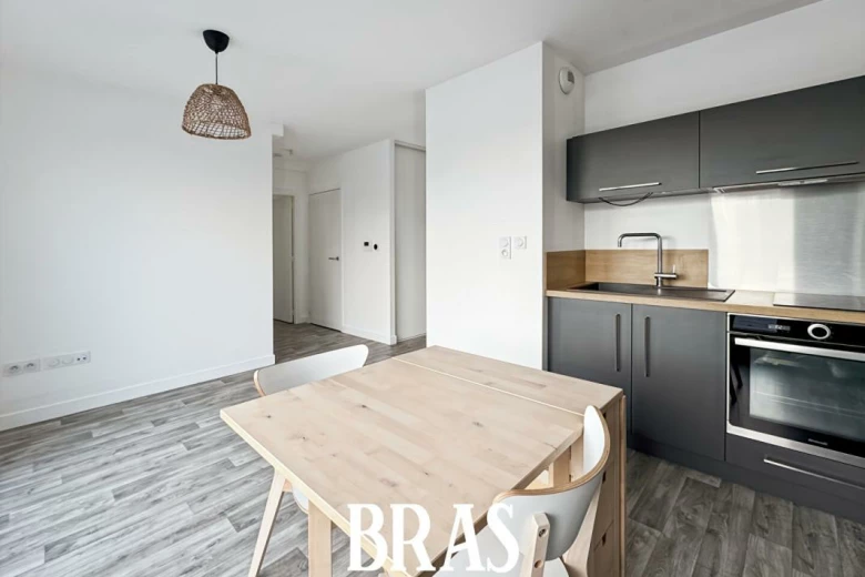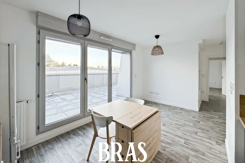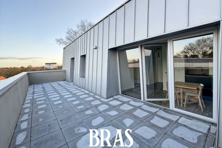 EXCLUSIVITÉ BRAS IMMOBILIER - Bouguenais Les Couëts - Secteur Grande Ouche / La Jaguère. En second rideau, nous vous proposons à l'achat, un bel appartement niché au dernier étage d'un petit immeuble de 3 étages entouré de verdure. Appartement de type T2 d'environ 40 m² avec une magnifique terrasse de 30 m², le tout exposé OUEST. Logement comprenant une entrée avec un dégagement desservant l'espace de vie avec sa cuisine aménagée et équipée, un cellier (ou cave), une salle d'eau avec WC, et une belle chambre.