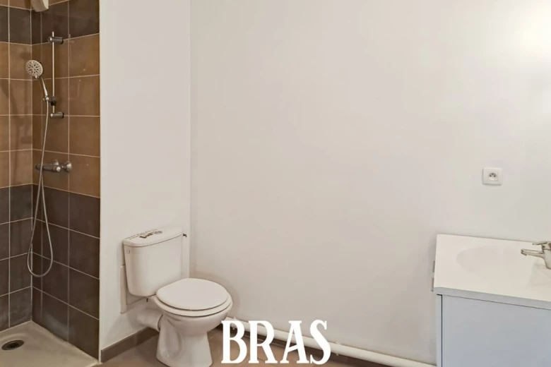 Au deuxième étage, T2 de 39,44m² ensoleillé, séjour avec cuisine ouverte, accès à une terrasse de 5,30 m². Une chambre et salle d'eau avec wc.