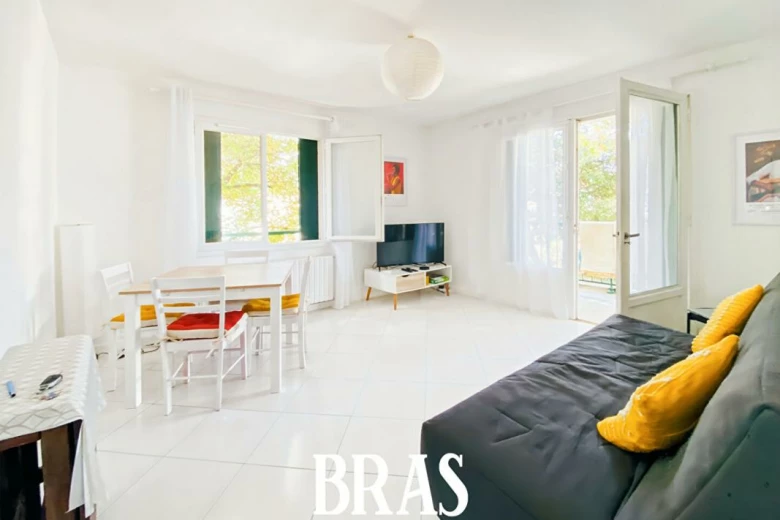 Cet appartement se compose d'une entrée avec rangement, un séjour lumineux avec double exposition et prolongé par un balcon, une cuisine aménagée et équipée, une chambre, une salle d'eau et un wc séparé.