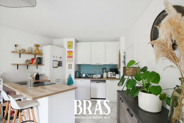 Il se compose d'une entrée indépendante avec un placard, une spacieuse pièce de vie avec une cuisine ouverte meublée et équipée avec goût, un grand jardin privatif à l'abri des regards et exposé SUD-OUEST avec une terrasse de 10m², une chambre parquetée avec placard et une salle d'eau.