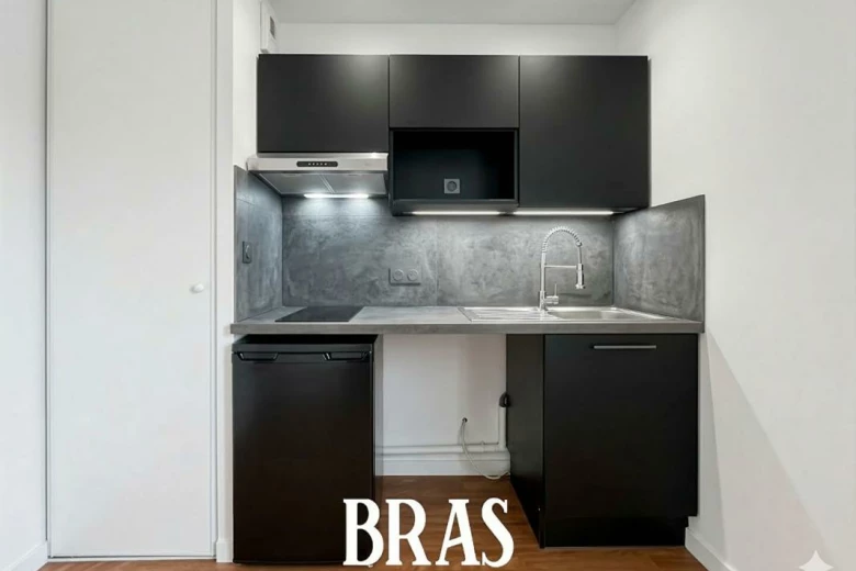 Vous pourrez profiter d'une belle pièce de vie avec balcon, un espace kitchenette aménagé et équipé indépendant (le tout d'environ 28 m²), une salle d'eau et un WC indépendant dans l'entrée, une belle chambre de 10.80 m².