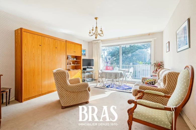 EXCLUSIVITÉ - Dans une résidence face mer du quartier des Oiseaux, au 1er étage, proche du marché et de l'avenue de Gaulle, votre agence BRAS Immobilier vous propose un appartement avec vue latérale mer comprenant une entrée, un séjour avec accès au balcon, une cuisine, une chambre, deux salles d'eau avec w-c. Cave.