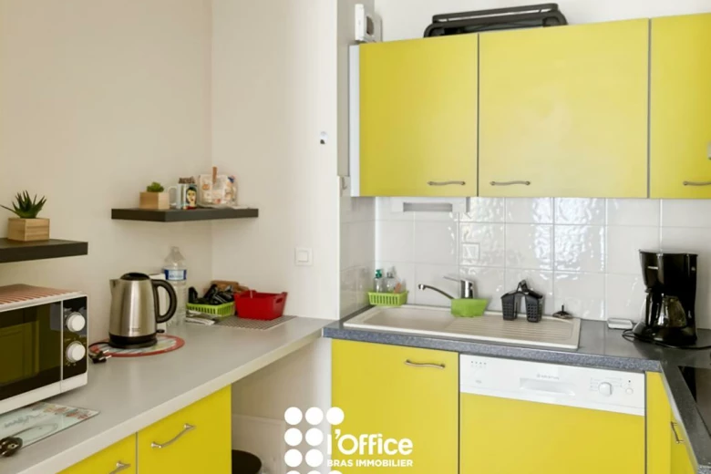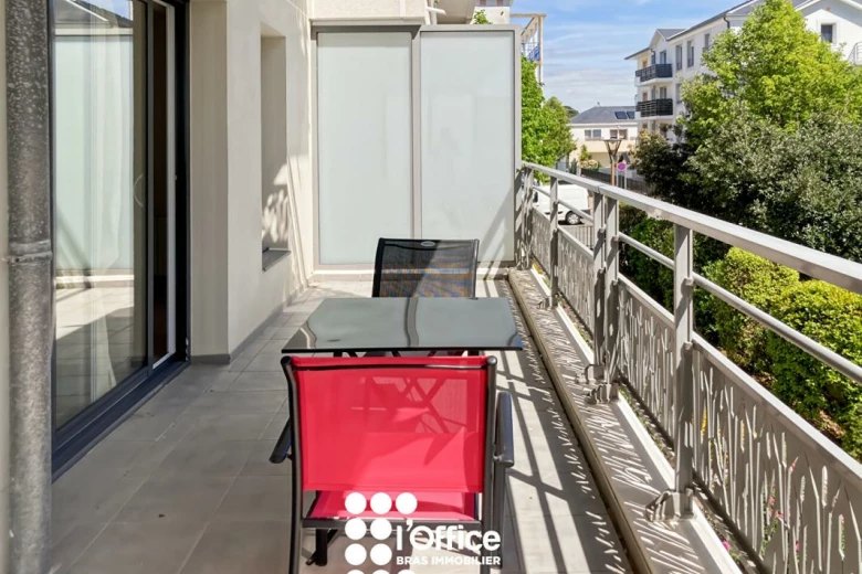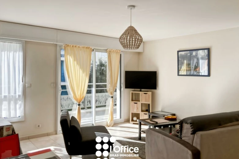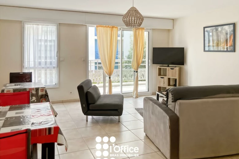L'Office Bras Immobilier vous présente en Exclusivité, à proximité immédiate du centre ville, de la Gare, de l'Océan et de toutes commodités, un vaste appartement Type 2 dans une résidence de standing comprenant : entrée avec placard, beau séjour/salon exposition Sud-Est donnant sur un grand balcon/terrasse de 14m2 - cuisine équipée et aménagée, une chambre avec placard - salle d'eau, wc - son plus : un parking et une cave privés en s/sol - Contacter Laurence ROUSSELEAU au 07 87 33 27 42 pour tous renseignements. Agent Commercial immatriculé au RSAC de la Roche-sur-Yon (85) sous le numéro 2020AC00002 (5.50 % honoraires TTC à la charge de l'acquéreur.)