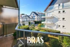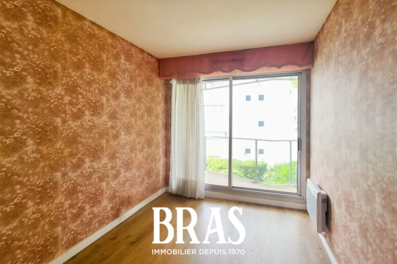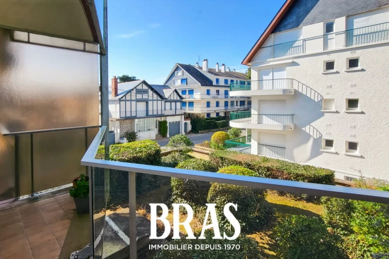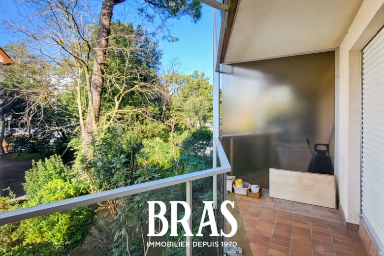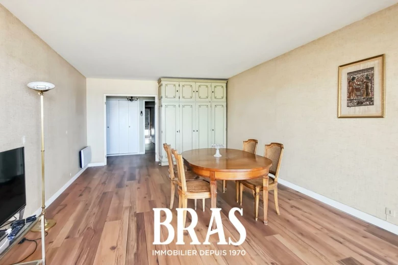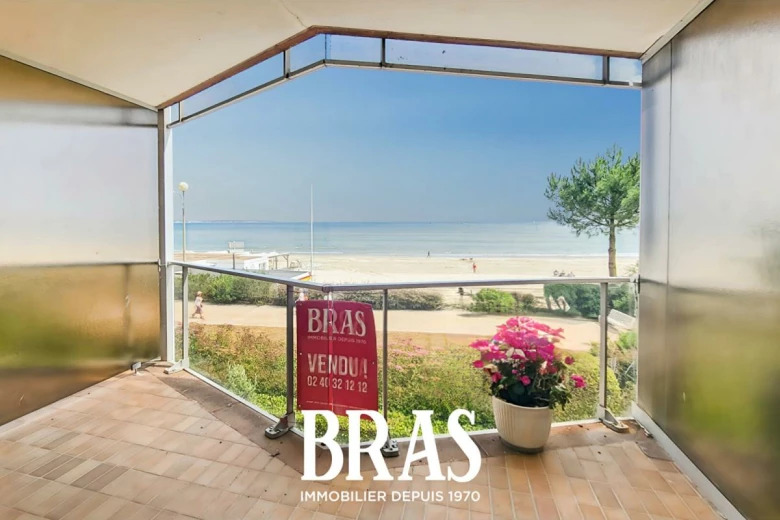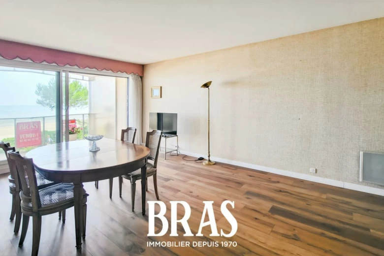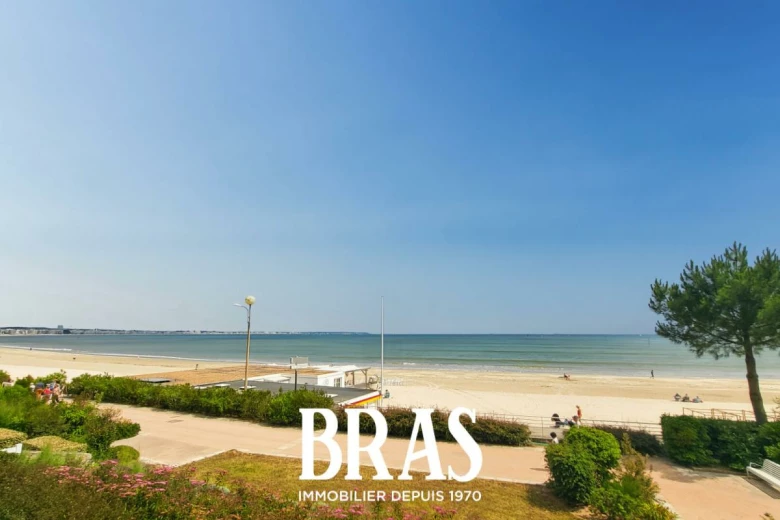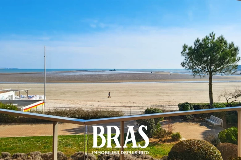 Face à l'Océan, sur l'esplanade Benoit, votre agence BRAS immobilier vous propose un appartement traversant, au premier étage d'une résidence sécurisée et comprenant une entrée avec placards, une salle de séjour face mer avec balcon, une salle d'eau, wc, cuisine et chambre avec balcon, côté cour.