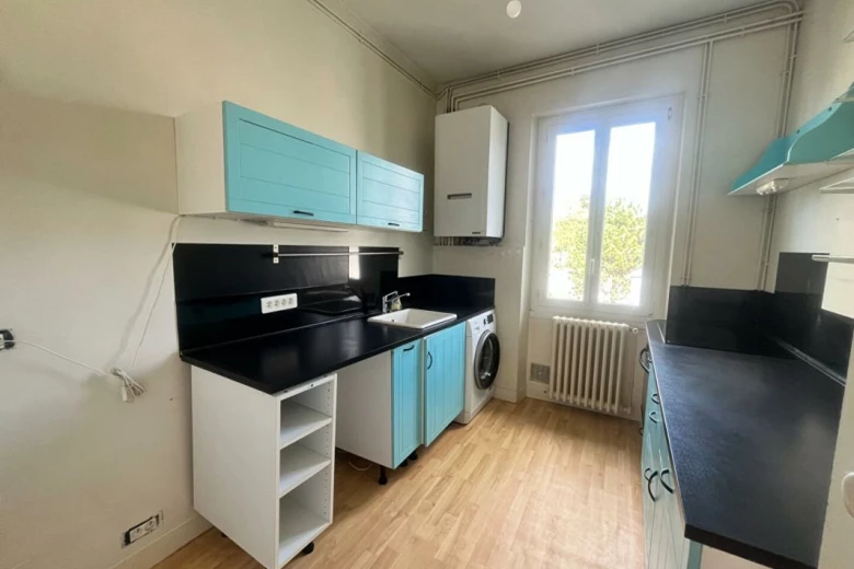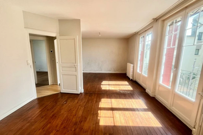 Au 1er étage d'une copropriété de caractère sans ascenseur, ce T2 (ancien T3) se compose d'une entrée, d'une cuisine aménagée, d'un beau séjour lumineux de 27,40 m², d'une chambre de 12,38 m², d'une salle d'eau et de WC séparés.