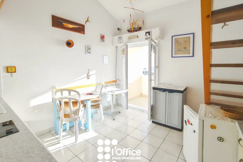 L'Office Bras Immobilier vous propose cet appartement de type 3 avec vue mer et terrasse d'une résidence de loisirs à proximité de la Corniche et de l'Océan - Comprenant: Entrée - espace nuit - Salle d'eau avec WC - Séjour avec coin cuisine équipée , mezzanine - Terrasse face mer avec store banne .Vous apprécierez sa vue imprenable sur l'Océan ainsi que son emplacement privilégié, idéal pour profiter pleinement de vos séjours en bord de mer. Un garage vient complété le bien .