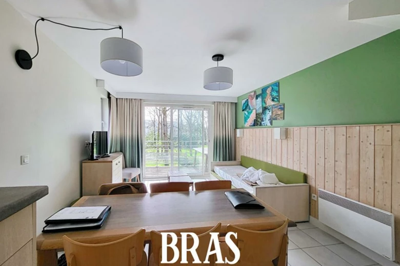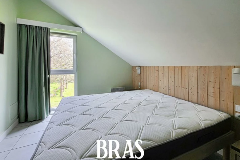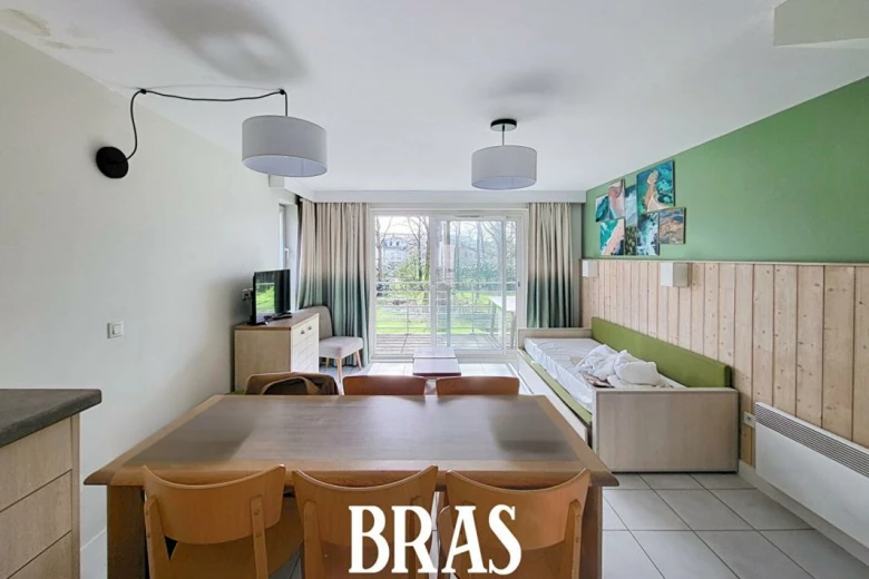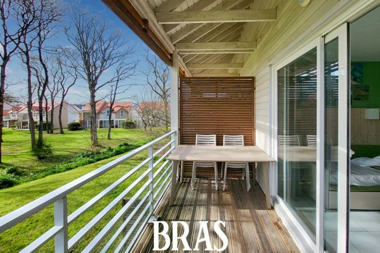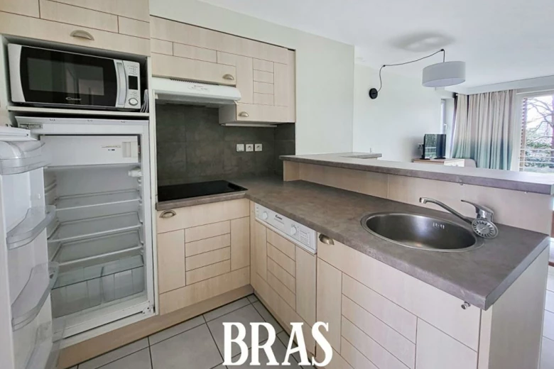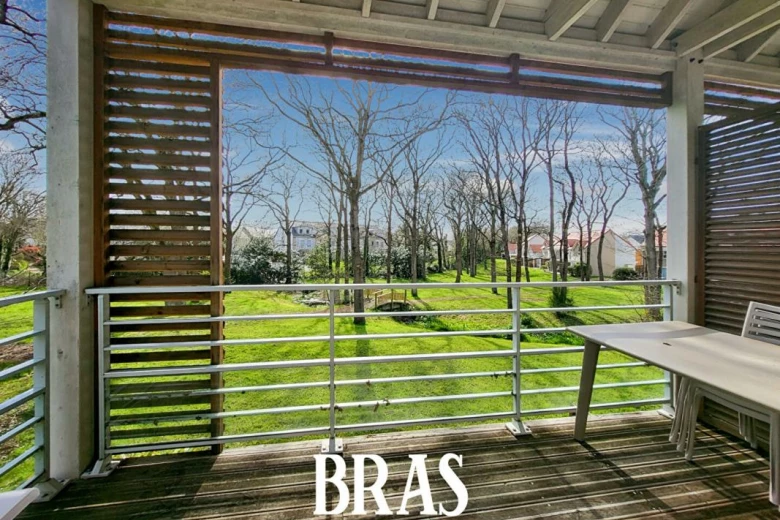 A 3 km de la plage de Pornichet, au coeur d'un site piétonnier avec piscines, laverie, aires de jeux, votre agence BRAS IMMOBILIER vous propose un appartement de type 3, en duplex comprenant un salon - séjour avec cuisine ouverte aménagée et équipée et accès à une terrasse bien exposée et sans vis-à-vis, avec une vue dégagée sur la verdure.