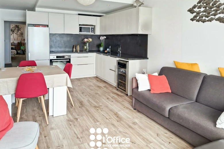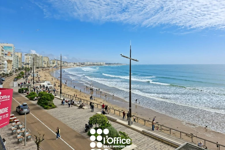 Sur le remblai, face à l'océan, l'Office Bras Immobilier vous invite à poser vos valises dans cet appartement T3 rénové idéalement placé avec sa vue magnifique sur la plage et l'océan et la baie des Sables.