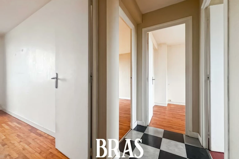 Dans une résidence gérée par Bras Immobilier, appartement de type 3 situé au 2ème étage sans ascenseur et comprenant : entrée avec rangements, séjour sur parquet (SUD) avec un petit balconnet donnant sur l'arrière de la copropriété au calme, cuisine indépendante et équipée (four, plaques, hotte, meubles), deux chambres sur parquet dont une avec placard, une salle d'eau ,des WC séparés et un cellier.