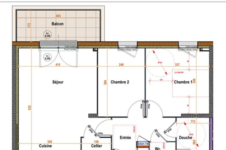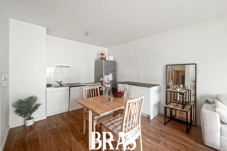 Dans un ensemble résidentiel, au calme, récent appartement fonctionnel de type 3 comprenant : entrée avec placard, cellier, pièce-à vivre donnant sur un balcon de 7.80m2, un coin cuisine, un dégagement, deux chambres , une salle d'eau avec douche et meuble vasque, un WC séparé.