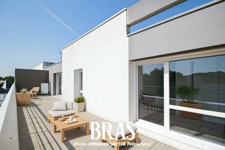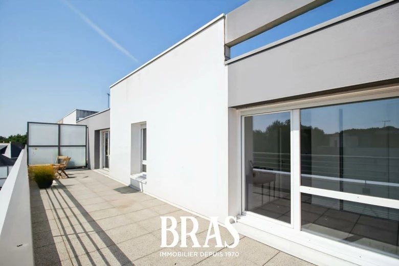 Situé dans une copropriété sécurisée et contemporaine à proximité des commodités et transports en commun, ce trois pièces bénéficie d'une superbe terrasse. Niché au dernier étage, il comprend une entrée indépendante, une pièce de vie traversante et lumineuse, donnant sur une terrasse de 28m² plein ciel exposée SUD-OUEST, une cuisine ouverte équipée et aménagée, une arrière cuisine, deux chambres dont l'une avec placard et ayant accès à la terrasse, une salle d'eau avec une grande douche et une fenêtre.