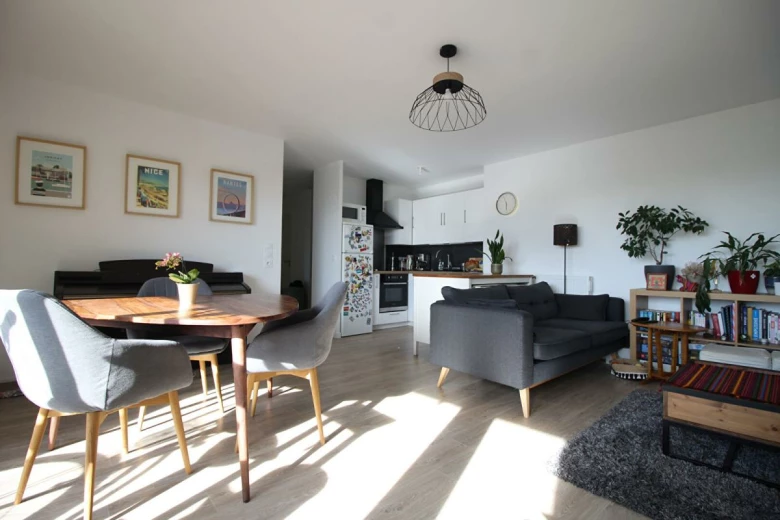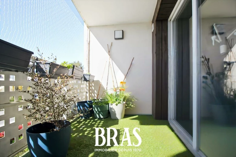 Il bénéficie d'une entrée indépendante desservant une pièce de vie spacieuse et lumineuse, avec une cuisine conviviale aménagée et équipée, ouvrant sur un balcon ensoleillé et sans vis-à-vis exposé Sud-Ouest. La partie nuit se compose de deux chambres confortables, d'une salle d'eau fonctionnelle et d'un wc indépendant.