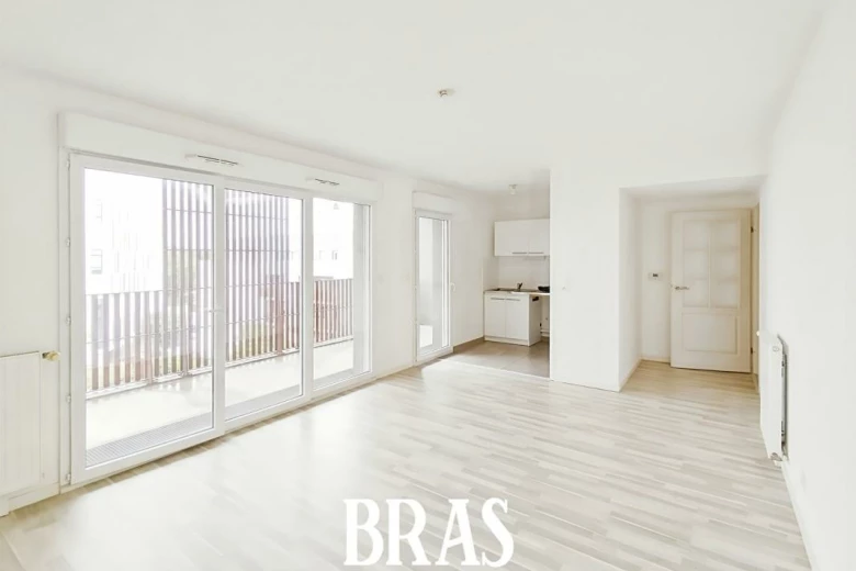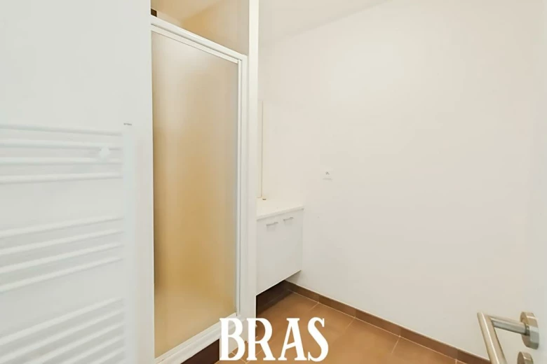 Une entrée avec une buanderie pouvant servir également de rangement, une pièce de vie avec une cuisine ouverte aménagée et équipée exposée Sud-Est donnant sur un grand balcon de plus de 11 m², un dégagement desservant 2 chambres avec chacune un placard aménagé, une salle d'eau avec douche et meuble vasque, des WC indépendant.