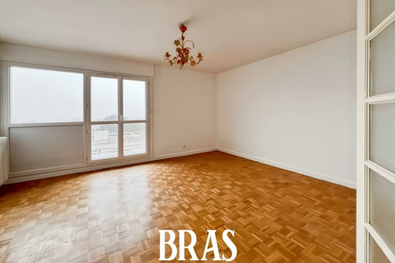 Un séjour lumineux, sur parquet, une cuisine indépendante, aménagée et équipée le tout donnant sur un balcon de 6 m²