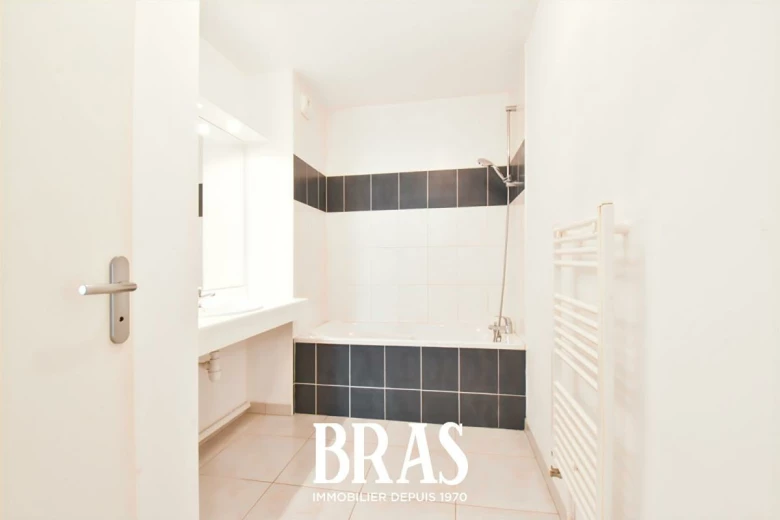 Une entrée avec son grand placard, un beau salon-séjour exposé Sud-Ouest donnant sur une loggia de 4.30m², une cuisine ouverte avec son arrière-cuisine, deux chambres avec chacune son placard aménagé, une salle de bains et des WC séparés.
