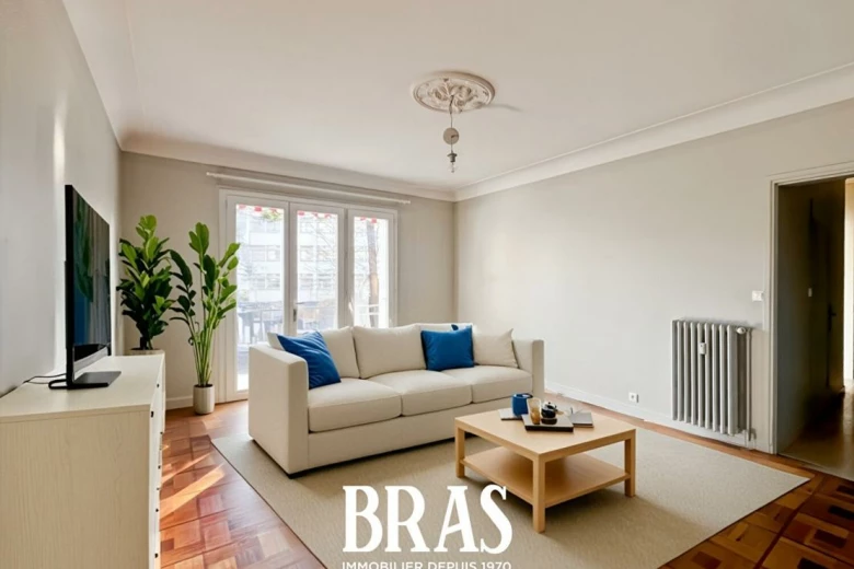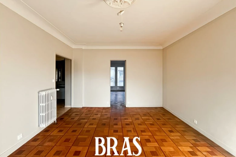 GUIST'HAU - Au coeur du triangle d'or, idéalement situé boulevard Gabriel Guist'hau et dans une résidence bien entretenue de standing, appartement traversant situé au 1er étage avec ascenseur et comprenant : une entrée avec placard, un dégagement, une cuisine séparée et équipée (plaques, évier, hotte, four, meubles haut et bas), un séjour sur parquet avec un accès sur un balcon (OUEST) donnant sur le jardin de la copropriété, deux chambres sur parquet dont l'une avec de nombreux placards et avec un deuxième balcon, une salle d'eau (douche, lavabo) et des WC séparés.