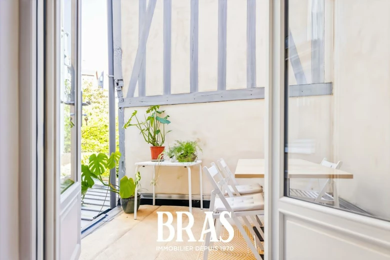Atout rare et précieux en hypercentre : une terrasse intimiste donnant sur une cour calme, véritable havre de paix aux pieds des commerces, restaurants, remparts et animations.