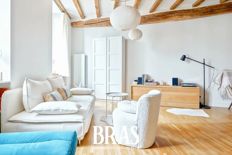 Vous serez séduit par sa hauteur sous plafond, sa terrasse, ses poutres apparentes et ses volumes harmonieux qui offrent une atmosphère chaleureuse et unique.