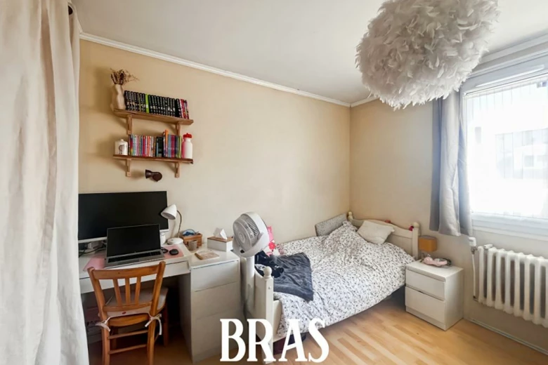 Rue du Petit Bel-Air, dans une résidence récemment rénovée, appartement traversant de type 3 situé au 1er étage sans ascenseur et comprenant : une entrée, deux chambres dont l'une avec placard, une salle d'eau (douche, meuble vasque) avec un cellier attenant (arrivée d'eau), un WC, une cuisine aménagée et équipée ouverte sur un séjour lumineux sur parquet et bénéficiant d'un accès à un petit balcon.