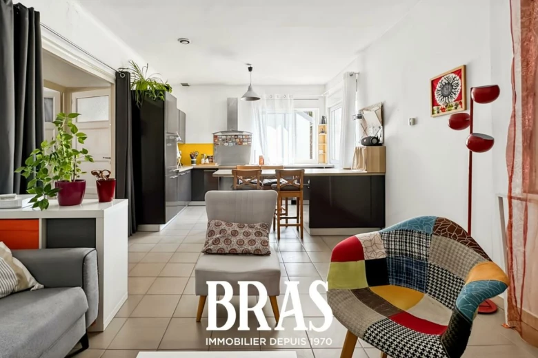 Nouveauté BRAS Immobilier - Entre Les Trois Moulin et le Parc de Praud à Rezé. Niché dans une maison de 1954 qui ne compte que quatre logements, cet appartement de 80 m² se vit comme une maison. Occupant à lui seul l'intégralité du premier.