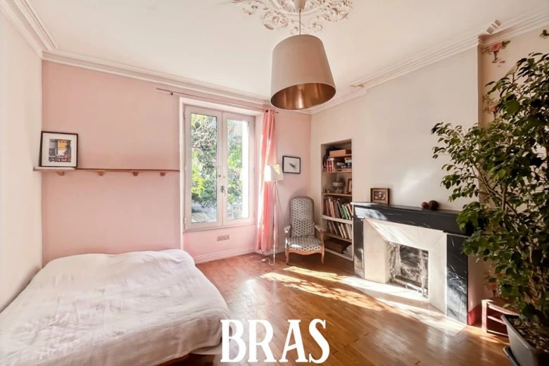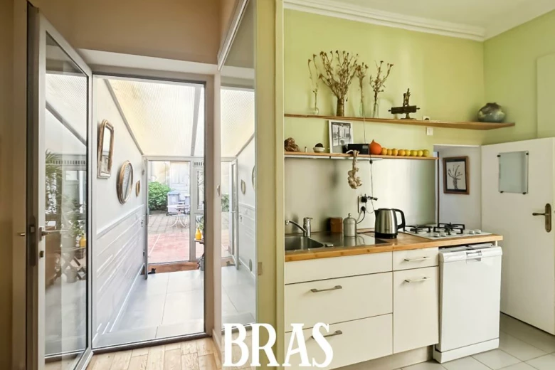 Duplex en copropriété avec une petite courette sécurisée, partagée avec le voisin.