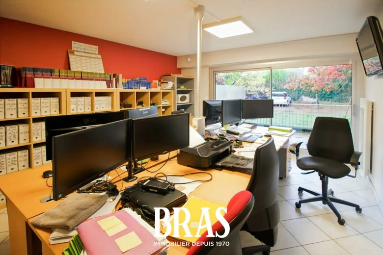 Le bien propose 5 bureaux dont 3 avec terrasse privative donnant sur la verdure et 2 bureaux donnant côté rue, ainsi qu'un sanitaire indépendant.
