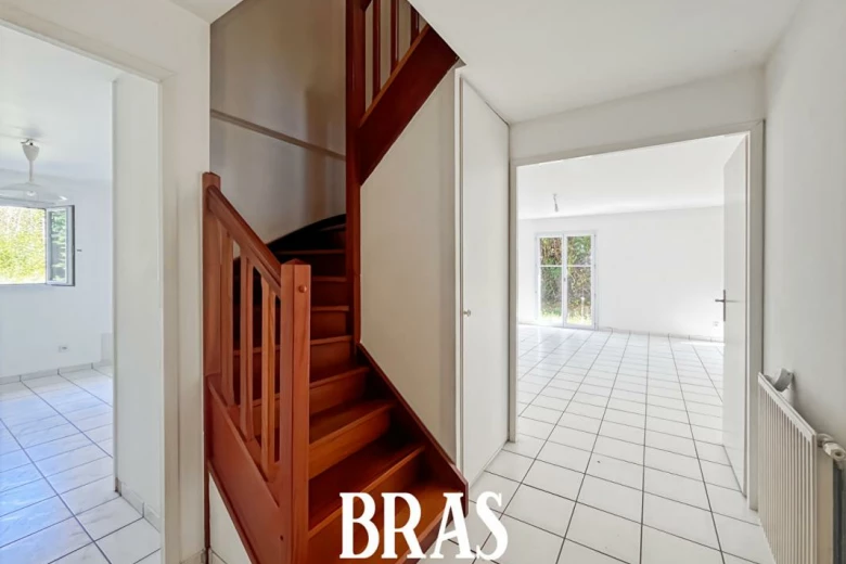 Entre Souillarderie et Landreau, dans une rue résidentielle, maison avec jardin comprenant : entrée, vaste pièce-à-vivre sur carrelage donnant sur un jardin (EST-OUEST), une cuisine séparée et aménagée, un WC, un accès au garage.