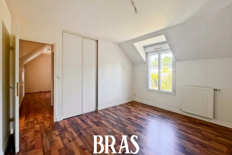 A l'étage, par un escalier en bois, un dégagement, 3 chambres dont deux avec placards et l'une avec sa salle de bain privée, un WC, une deuxième salle de bain.
