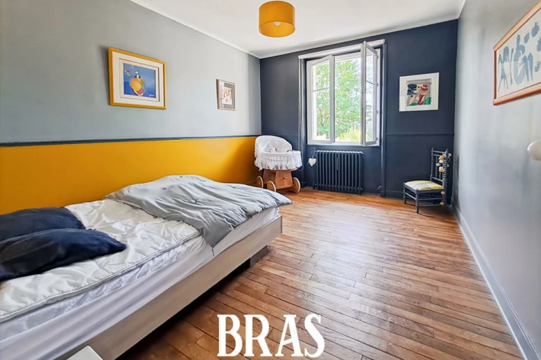 Séjour double, salle à manger et cuisine de plain-pied, à l'étage vous trouverez 4 chambres, salle de bains et salle d'eau.