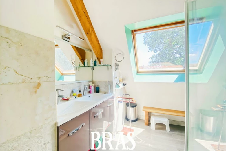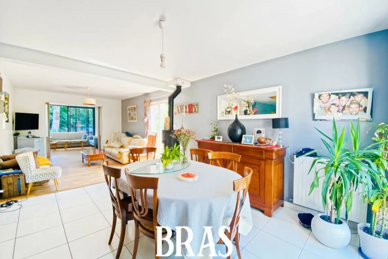 Venez découvrir les 145m² qui vous offrent un plateau d'un salon séjour d'environ 57m² donnant sur une terrasse et le jardin, d'une cuisine aménagée et équipée ouverte, une chambre parentale avec salle de bains pour le rez-de-chaussée . A l'étage, vous découvrirez un palier desservant trois chambres, un bureau et une salle d'eau avec wc.