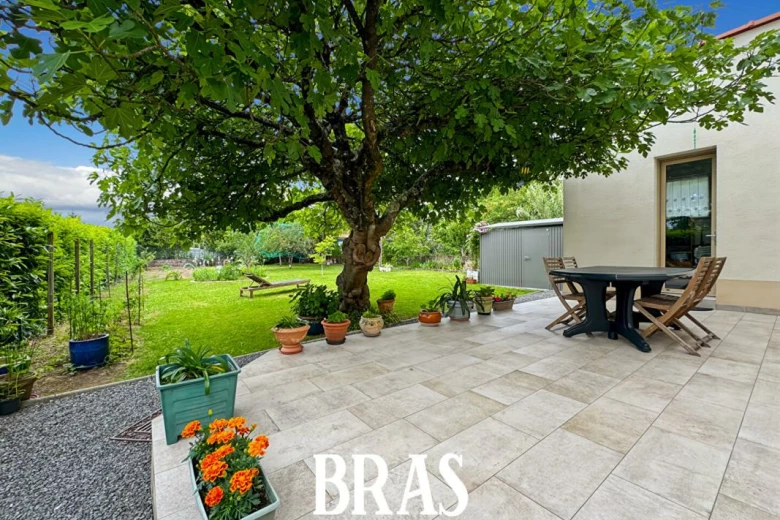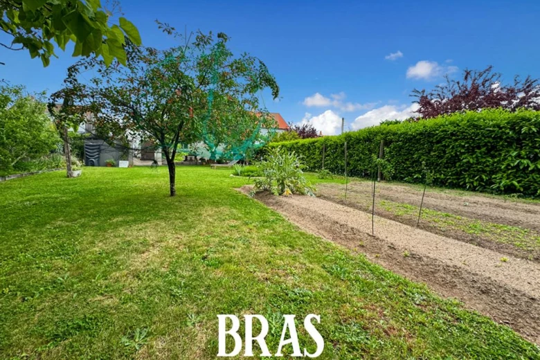 Implantée sur une belle parcelle de 784 m², sans aucun vis-à-vis, le jardin paysager accueille plusieurs arbres fruitiers, créant un cadre de vie agréable et intimiste.