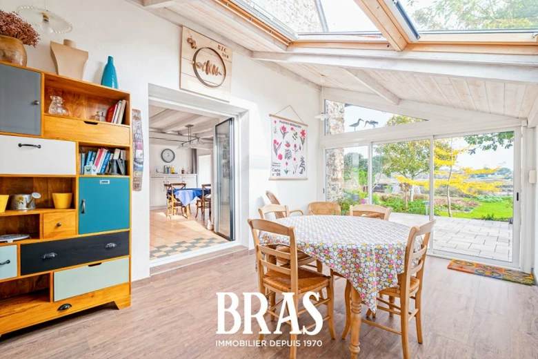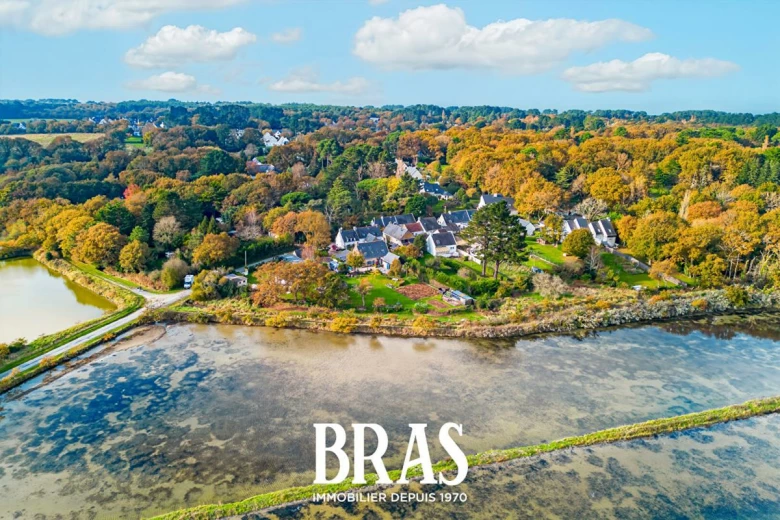Au coeur d'un hameau historique et à 1.5 km de la plage de Lanséria et des commerces, votre agence BRAS Immobilier vous propose une maison en pierres du XVIIIè, de 180m² (Loi Carrez) et 227 m² au sol, avec une vue dégagée sur les marais salants.