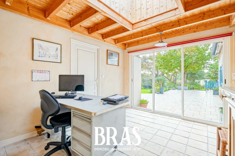 Vous disposerez, au rez-de-chaussée, d'un séjour-cuisine donnant accès à une terrasse sud-est, un salon avec une belle cheminée fermée, puis un second salon donnant sur la terrasse, une suite parentale avec accès terrasse, dressing, salle d'eau et w-c, bureau, arrière-cuisine, salle de bains et w-c.