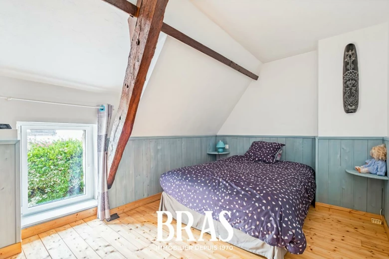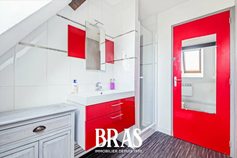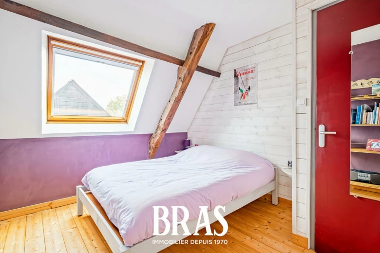 Le palier de l'étage dessert quatre chambres avec placards, une salle d'eau et un w-c, ainsi qu'un grenier aménageable de 27 m².