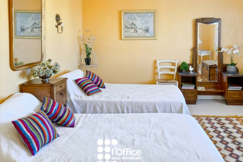 L'Office Bras Immobilier vous présente cette spacieuse (187m2 habitables) et lumineuse maison de Type 6/7 située à proximité du marché Arago et de toutes commodités, à 10 minutes à pied de la plage et à 15 minutes de la Gare. Ce bien est en bon état général édifié sur 520m2 de terrain clos et arboré. Il se compose d'une entrée/dégagement, séjour/salon, cuisine équipée et aménagée, 5 chambres dont une en RDC, bureau ou dressing, véranda, salle d'eau, salle de bains, 2 wc - buanderie et garage - Contacter Laurence ROUSSELEAU au 07 87 33 27 42 - Agent commercial immatriculé au RSAC de la RSY sous le numéro 2020AC00002