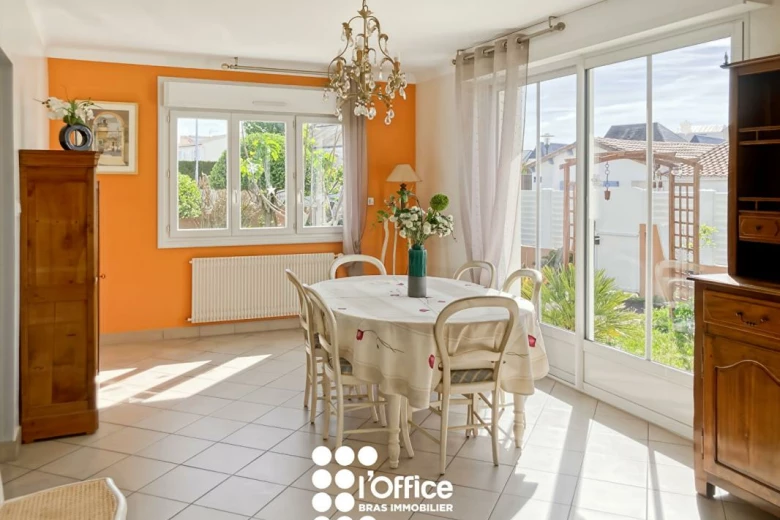 L'Office Bras Immobilier vous présente cette spacieuse (187m2 habitables) et lumineuse maison de Type 6/7 située à proximité du marché Arago et de toutes commodités, à 10 minutes à pied de la plage et à 15 minutes de la Gare. Ce bien est en bon état général édifié sur 520m2 de terrain clos et arboré. Il se compose d'une entrée/dégagement, séjour/salon, cuisine équipée et aménagée, 5 chambres dont une en RDC, bureau ou dressing, véranda, salle d'eau, salle de bains, 2 wc - buanderie et garage - Contacter Laurence ROUSSELEAU au 07 87 33 27 42 - Agent commercial immatriculé au RSAC de la RSY sous le numéro 2020AC00002