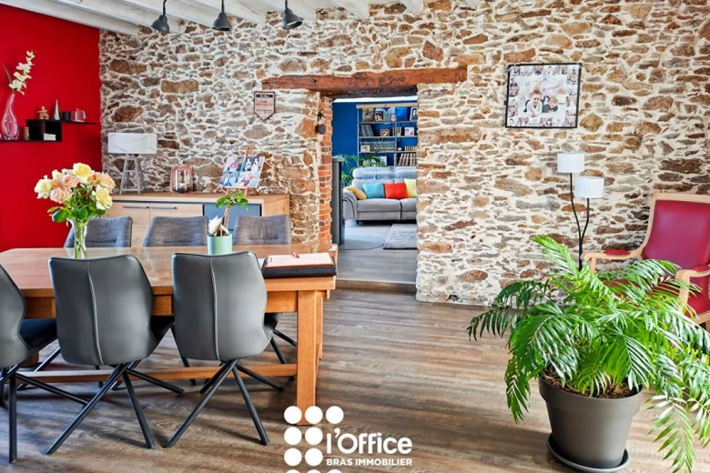Amoureux de la pierre, l'Office Bras Immobilier vous présente cet ensemble immobilier comprenant votre futur résidence principale de plus de 150m² habitables comprenant 3 chambres avec des dépendances, une très belle terrasse moderne et bien exposée avec un joli terrain arboré.
