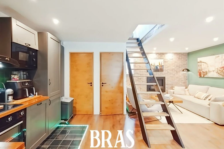 Vous accéderez à ce bien par une charmante petite cour où il sera possible de prendre vos repas lors des beaux jours, puis dans la maison rénovée récemment, et avec goût, vous pourrez profitez au rez-de-chaussée d'un salon-séjour avec sa cuisine ouverte aménagée et entièrement équipée.