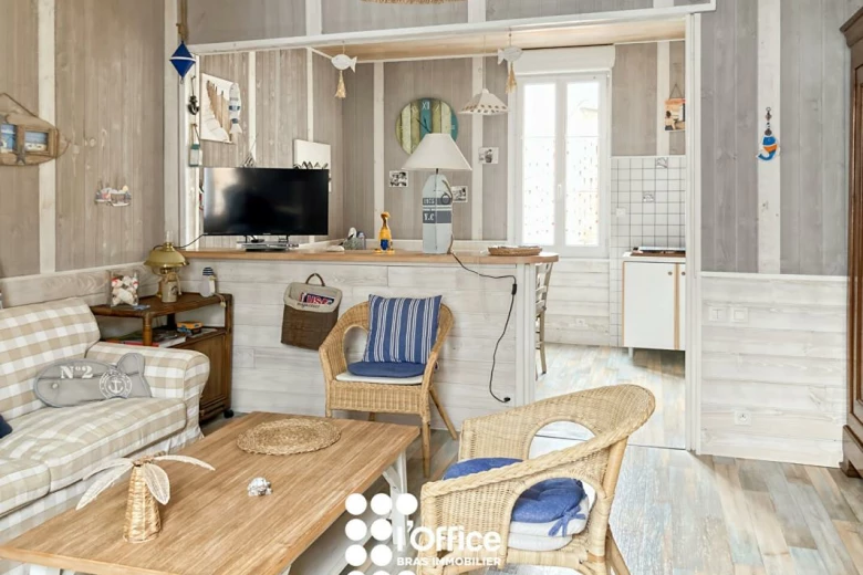 L'Office Bras Immobilier vous présente, quartier Guynemer, à deux pas de la grande plage, du marché Arago et de tous commerces, une maison sablaise de T3 sur deux niveaux située au calme d'une impasse avec son agréable séjour/salon traversant, cuisine ouverte aménagée, 2 chambres, salle d'eau, 2 wc et courette - Idéal en résidence secondaire - Contacter Laurence ROUSSELEAU au 07 87 33 27 42 pour tous renseignements. Agent commercial immatriculé au RSAC de la Roche-sur-Yon sous le numéro 2020AC00002. (4.98 % honoraires TTC à la charge de l'acquéreur.)
