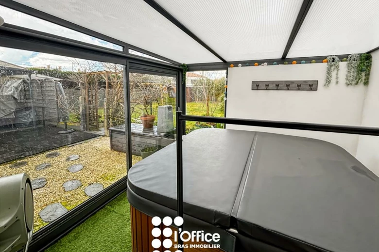 Elle se compose de deux chambres, d'un séjour lumineux, et de deux vérandas idéales pour profiter de la lumière naturelle en toute saison. Son beau jardin invite à la détente, tandis que le garage ajoute un espace de rangement ou de stationnement appréciable.