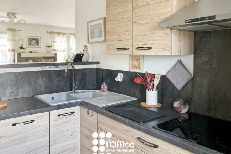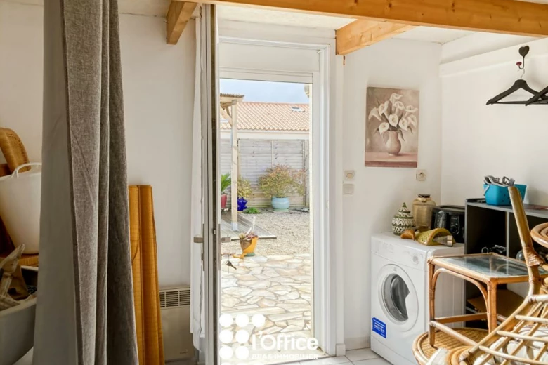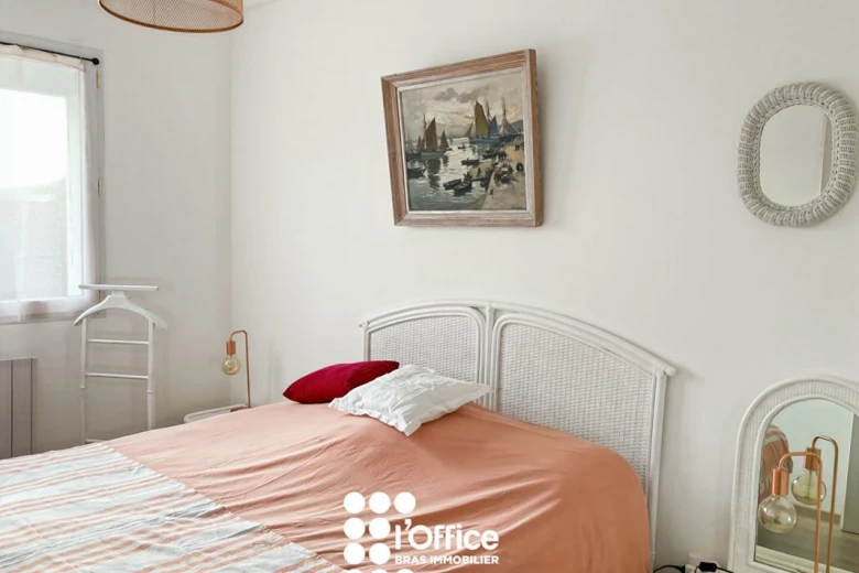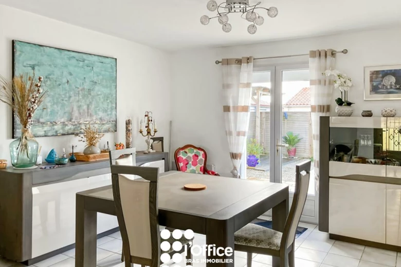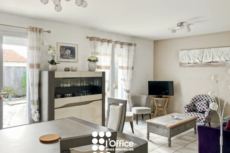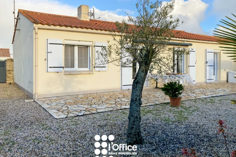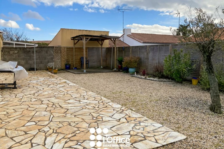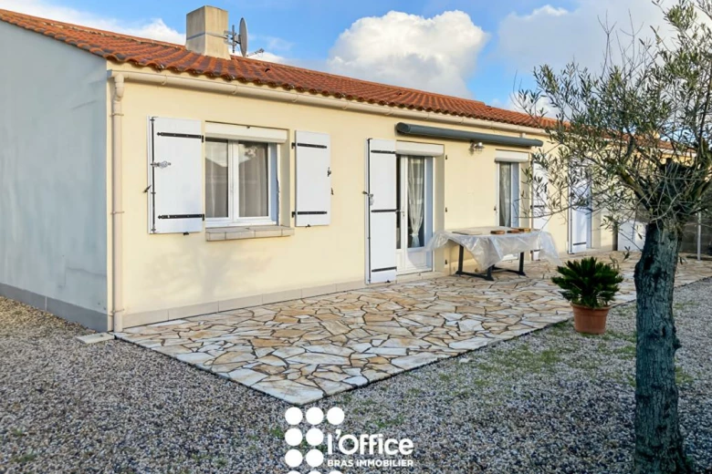 L'Office Bras Immobilier vous présente, à quelques minutes à pied du bourg du Château d'Olonne, une maison plain-pied de Type 3 édifiée sur agréable jardin clos sans vis-à-vis : entrée, séjour/salon avec terrasse plein Sud, cuisine américaine équipée et aménagée, deux chambres avec placard, salle d'eau, wc - arrière-cuisine et garage - Bon état général avec volets et store banne électriques- arrêt de bus à quelques pas de la maison.