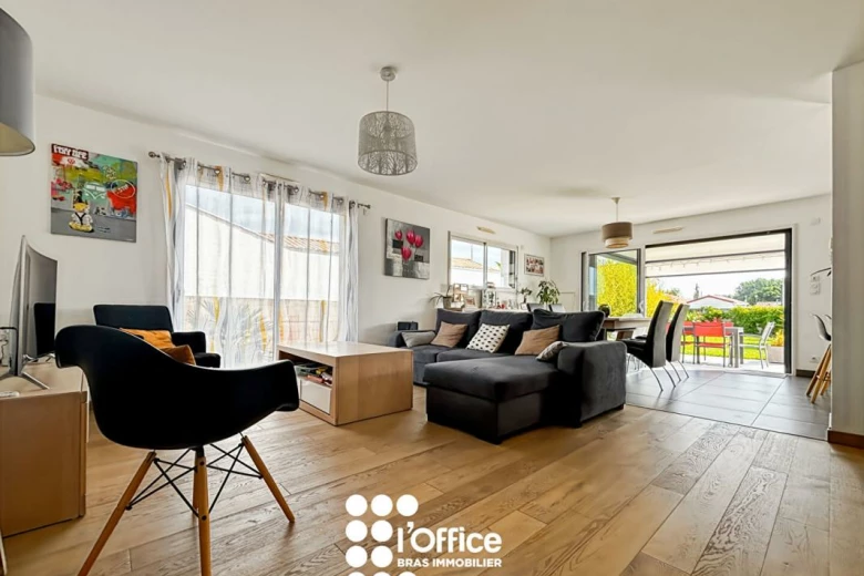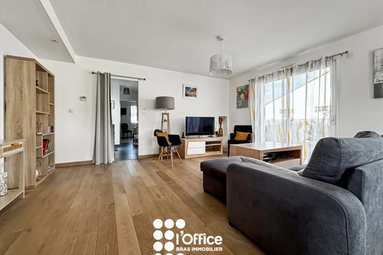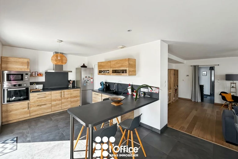- Un grand salon séjour avec cuisine ouverte.