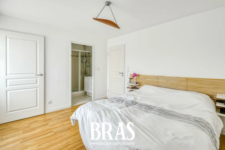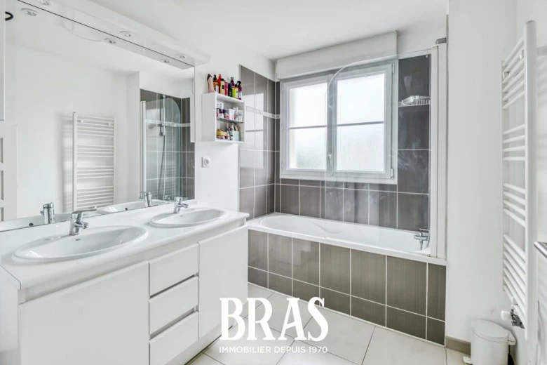 La maison se compose en rez-de-chaussée : d'un espace de vie avec cuisine aménagée et équipée, d'une chambre avec salle d'eau privative, d'une buanderie. A l'étage, vous trouverez un espace bureau, 2 chambres avec placards, une salle de bains, un wc et une chambre parentale avec salle d'eau privative.