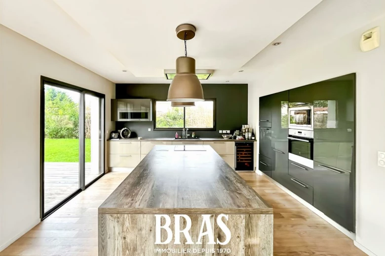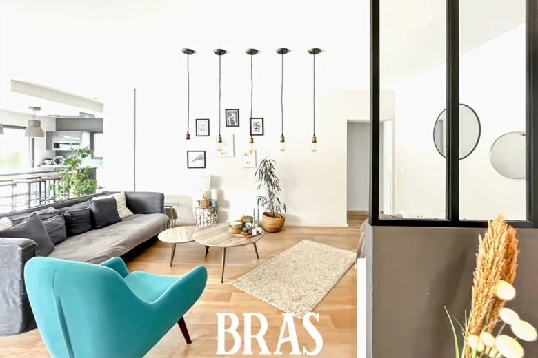 L'entrée ouvre sur un vaste salon-séjour baigné de lumière avec cuisine ouverte aménagée et équipée, idéal pour partager des moments conviviaux.