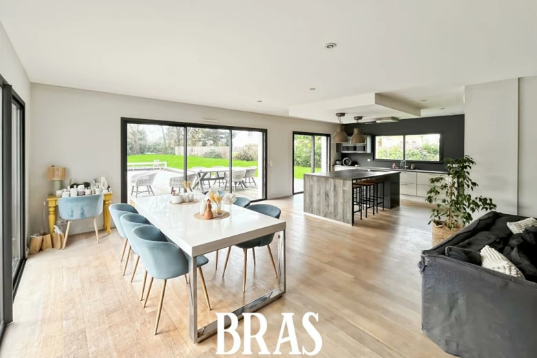 Située à deux pas du centre-ville de Saint-Lyphard, cette maison contemporaine de plain-pied construite en 2015 vous séduira par ses volumes, sa luminosité et son environnement calme. (SECTEUR MARLAIS)